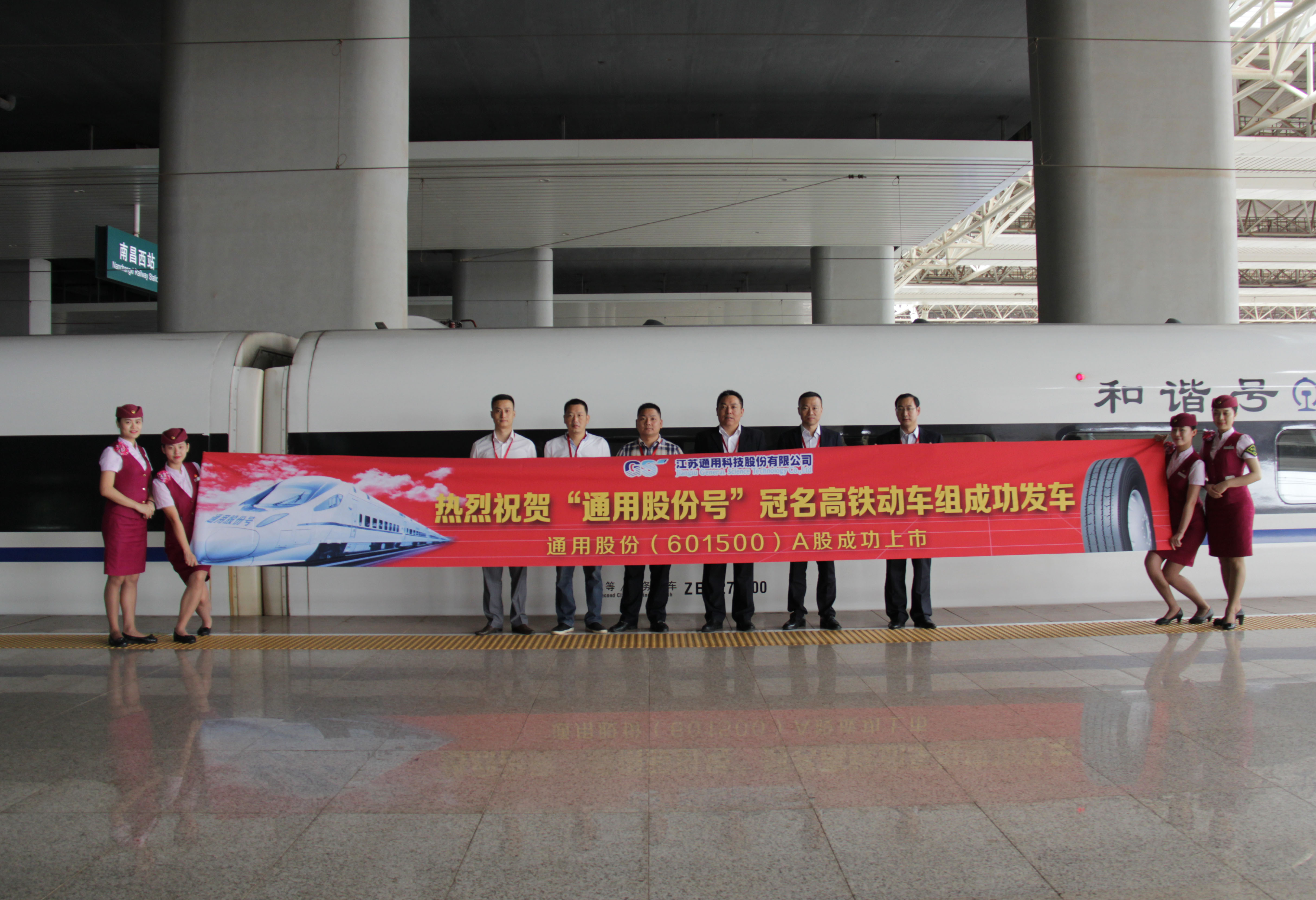 9月19日,江蘇通用科技股份有限公司在上交所鳴鑼上市(以下簡稱通用股份,股票代碼601500),標志著通用股份在資本市場的騰飛跨越。9月20日,一列滿載著喜悅與希望的“通用股份號”品牌專列高鐵G489從南昌西發車,跨越江西、湖南、湖北、河南、河北各省,貫穿大江南北,駛往首都北京。此次“通用股份號”發車是通用股份借力高鐵、乘勢而上的又一大品牌建設舉措,利用高鐵全冠名的媒體組合形式,全力打造國人了解通用股份的新窗口。
