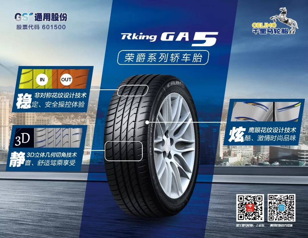 此次獲獎的半鋼乘用車胎千里馬GA5作為通用股份的匠心之作,聚焦舒適靜音性能,同時兼顧干濕地的操控,致力于為消費者帶來更佳的產品體驗。千里馬GA5采用國際前沿技術,包括世界領先的外輪廓曲線設計技術、外輪廓數字化材料分布仿真和飛馬降噪仿真技術等,降低行駛過程中車輛與輪胎結構振動帶來的噪聲,帶來靜音舒適的駕乘體驗。同時通過納米硅配方技術、非對稱花紋設計, 3D切角技術等注入其中,令干濕地操控和抓地力變得更加優秀。在與國際知名品牌的對比測試中,GA5在剎車性能、靜音性能、繞樁速度等多方面取得了優異成績,堪稱性能均衡的高價值輪胎。