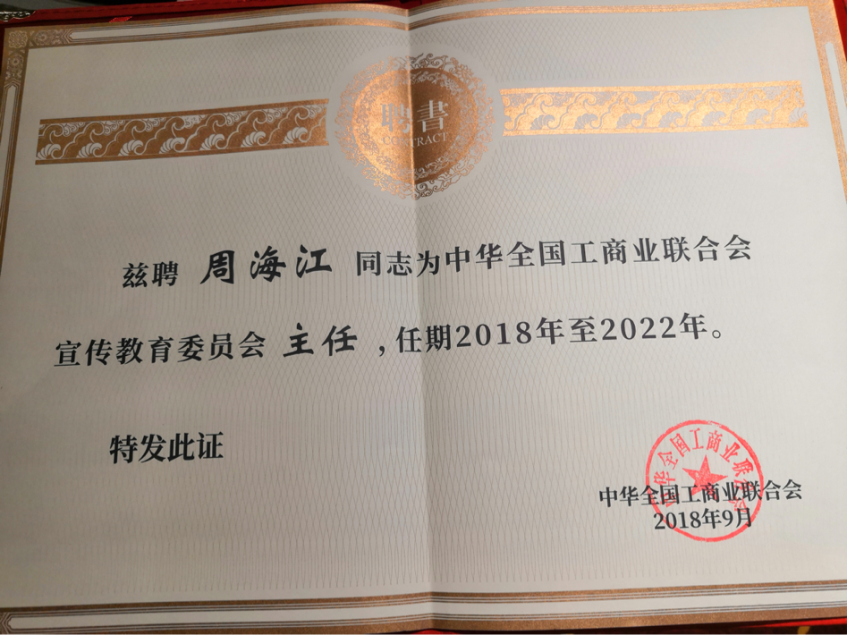 周海江擔(dān)任全國工商聯(lián)宣傳教育委員會主任